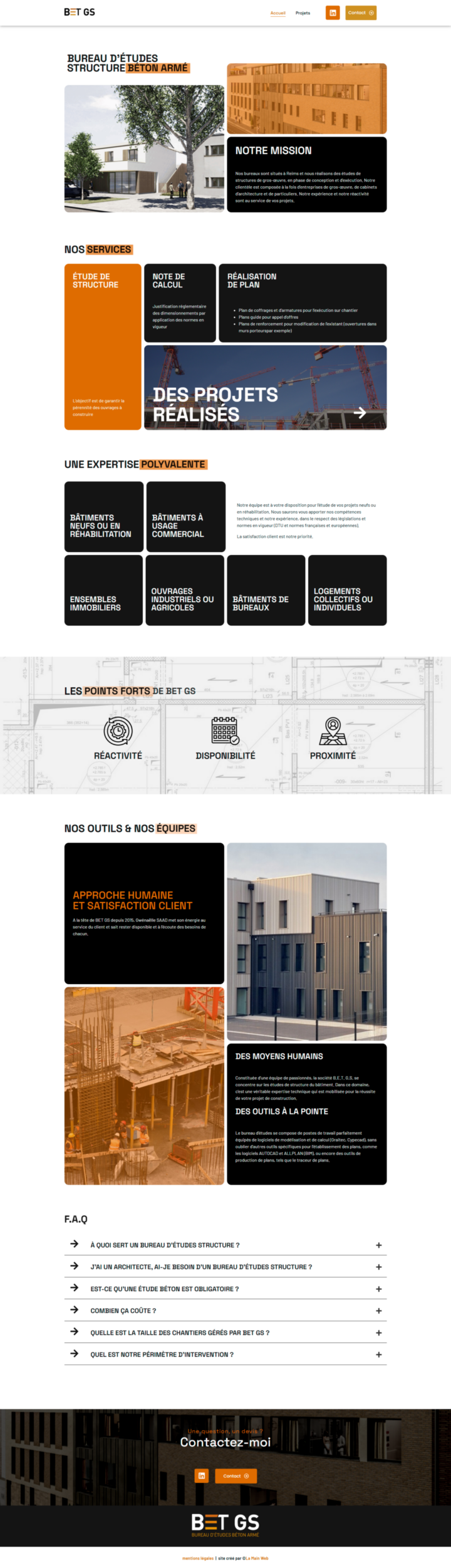 La refonte du site internet a permis de corriger ces points. Désormais, BET GS affirme clairement son expertise et valorise ses savoir-faire. L’entreprise met en avant ses projets réalisés et répond en amont aux principales interrogations de ses clients grâce à une FAQ complète.